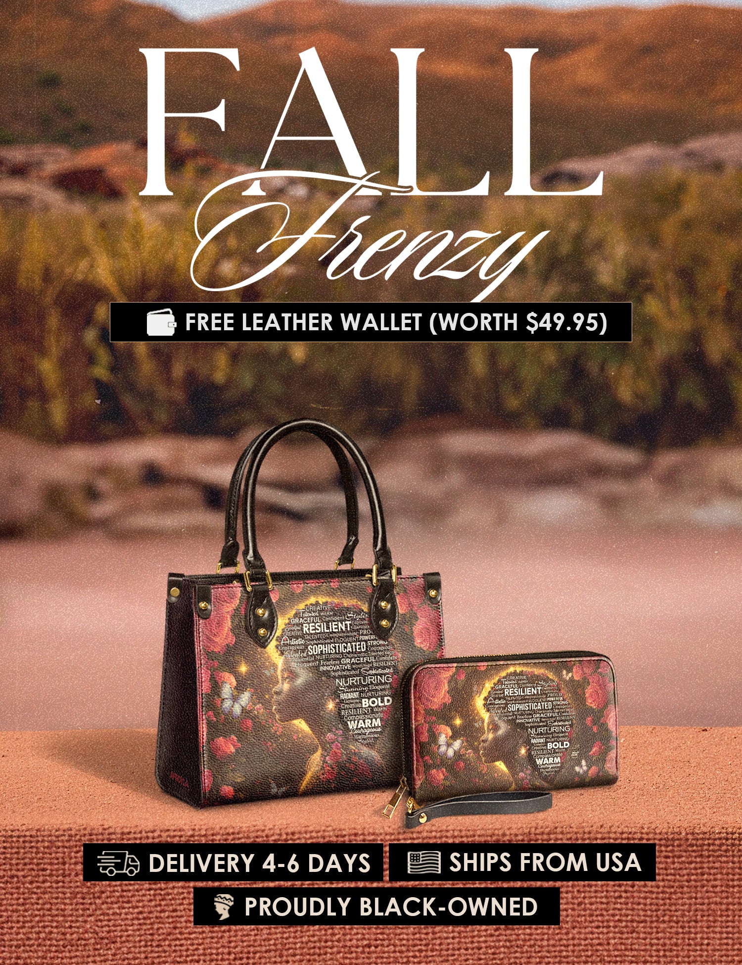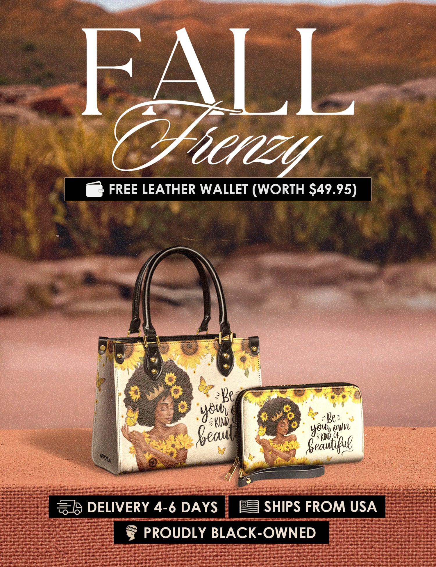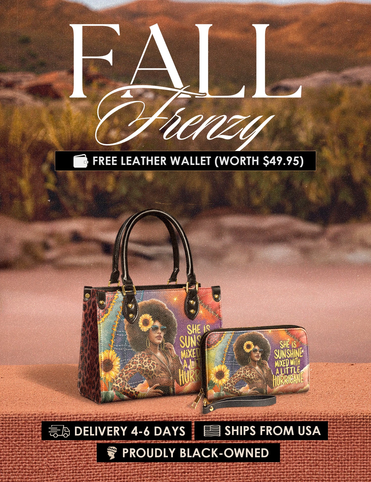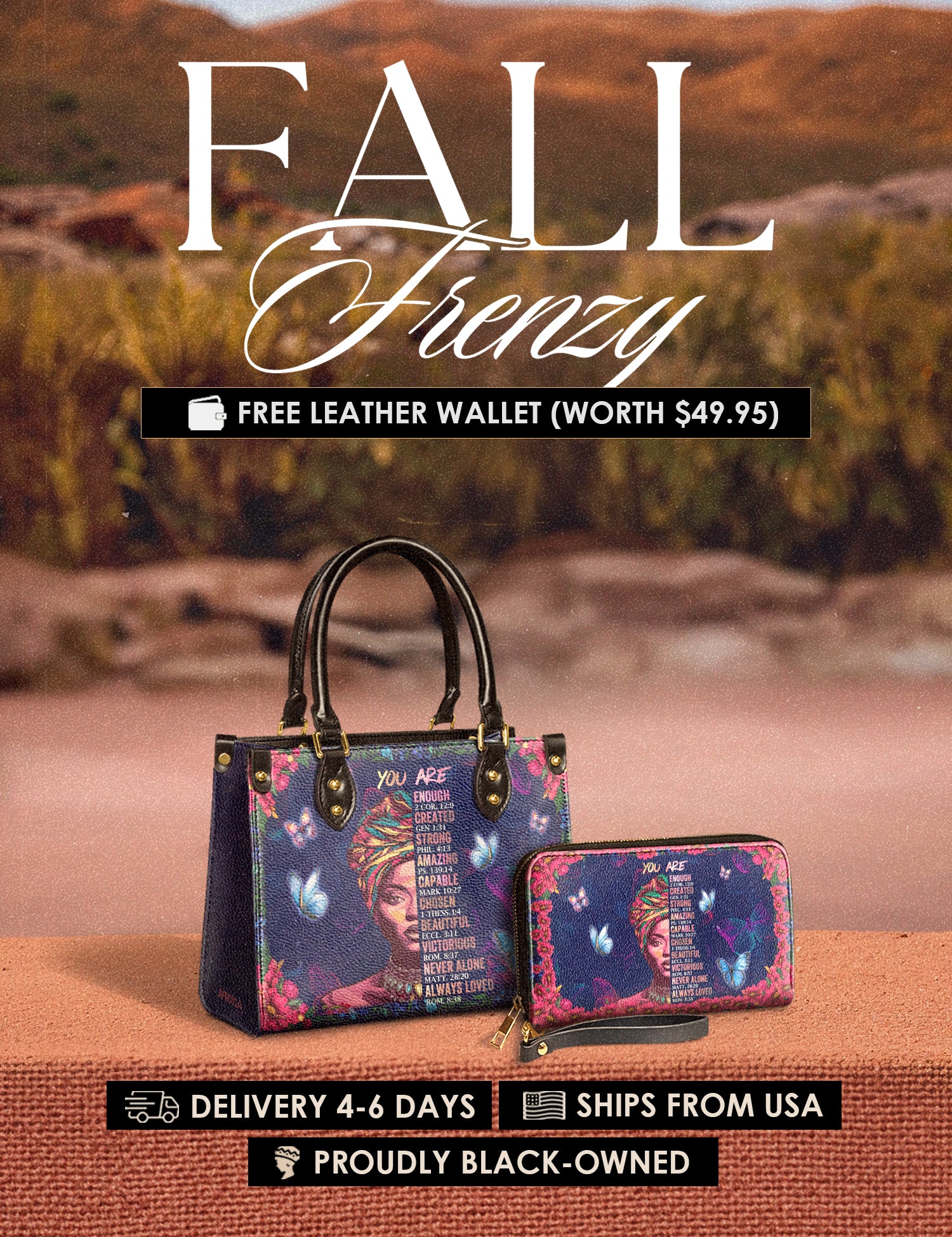 Fall Frenzy Special Deal: Get a FREE $49.95 leather wallet when you buy any bag. Offer ends October 31st. No discount code needed – just add to cart and save.