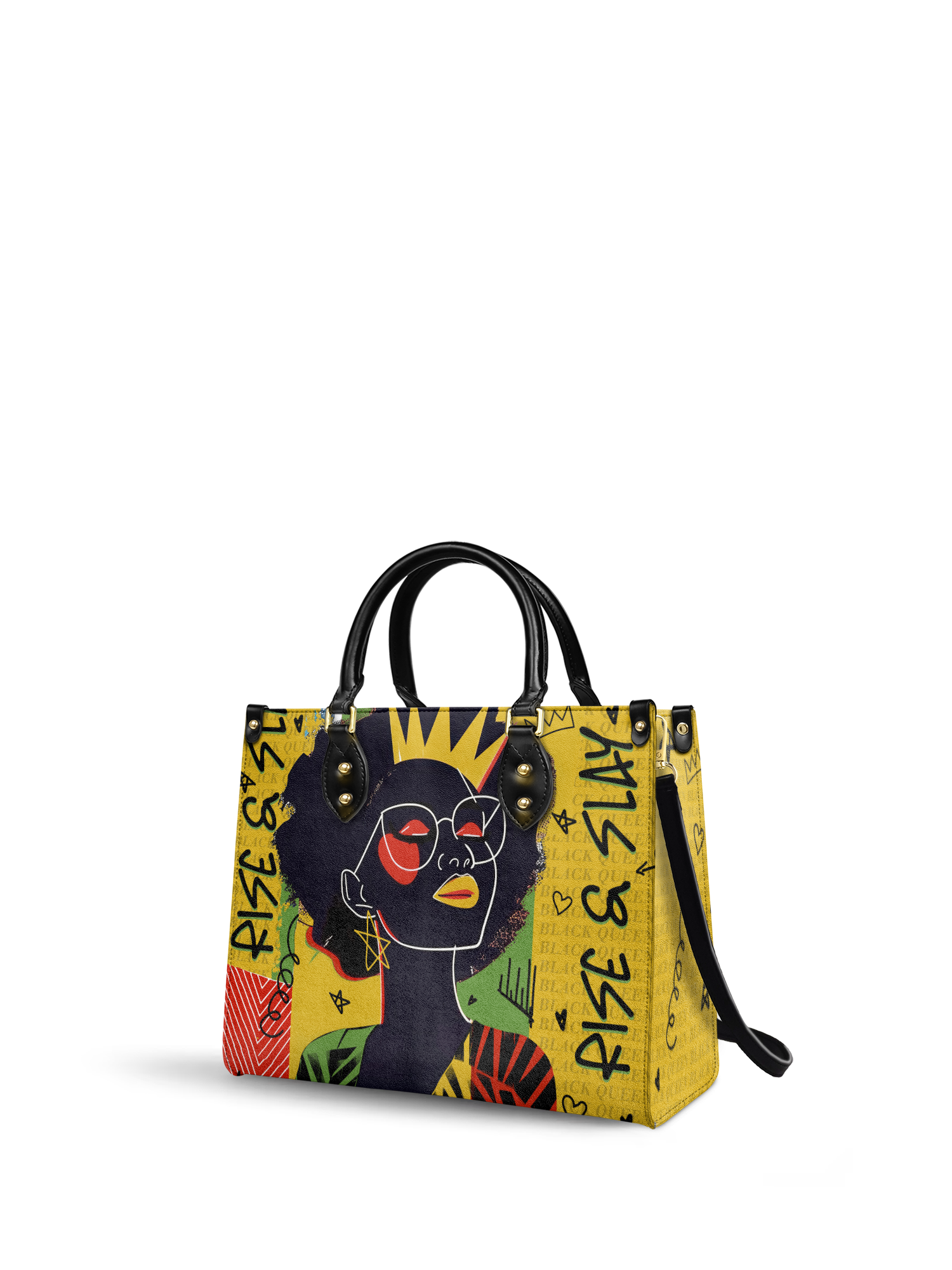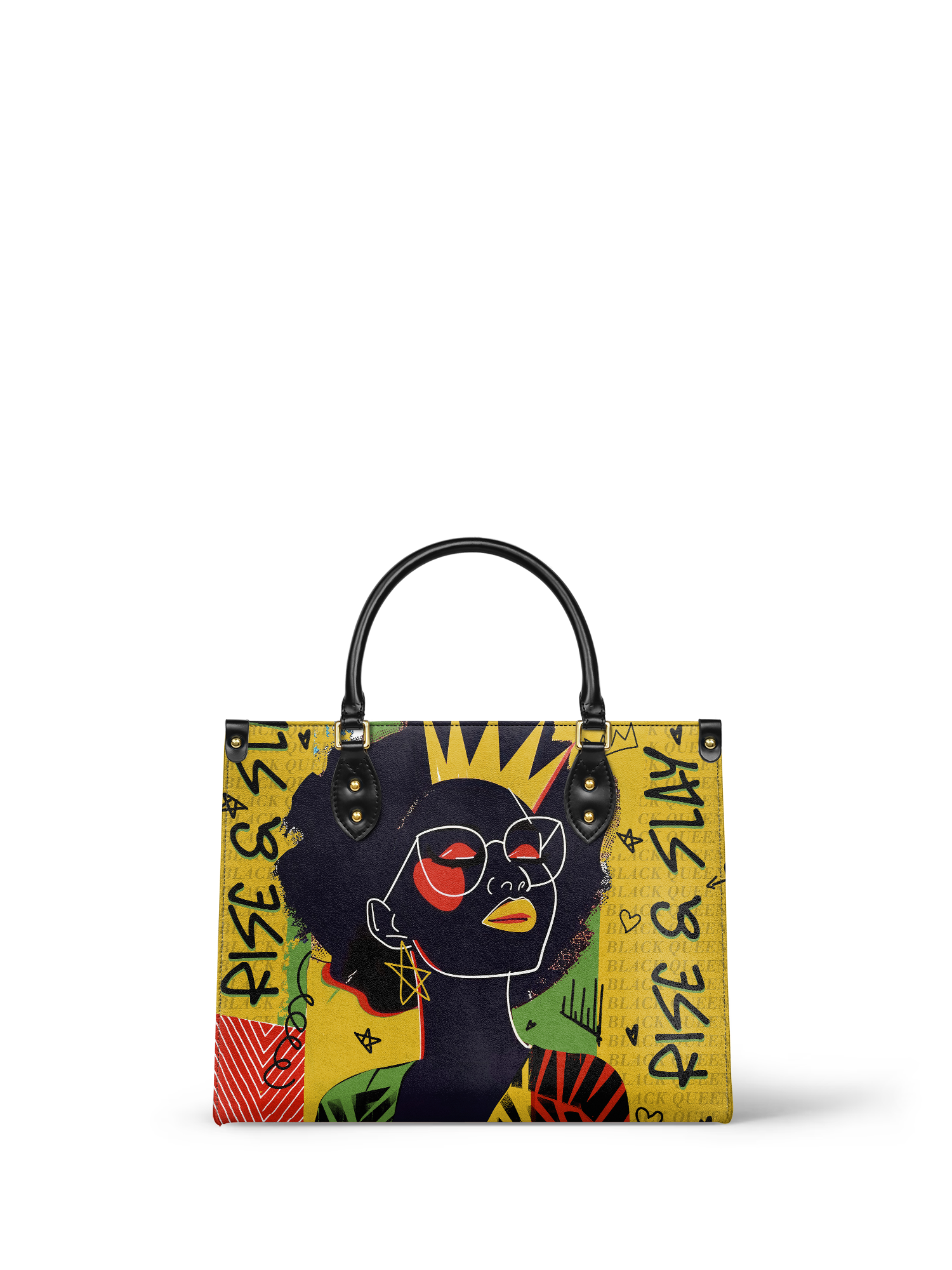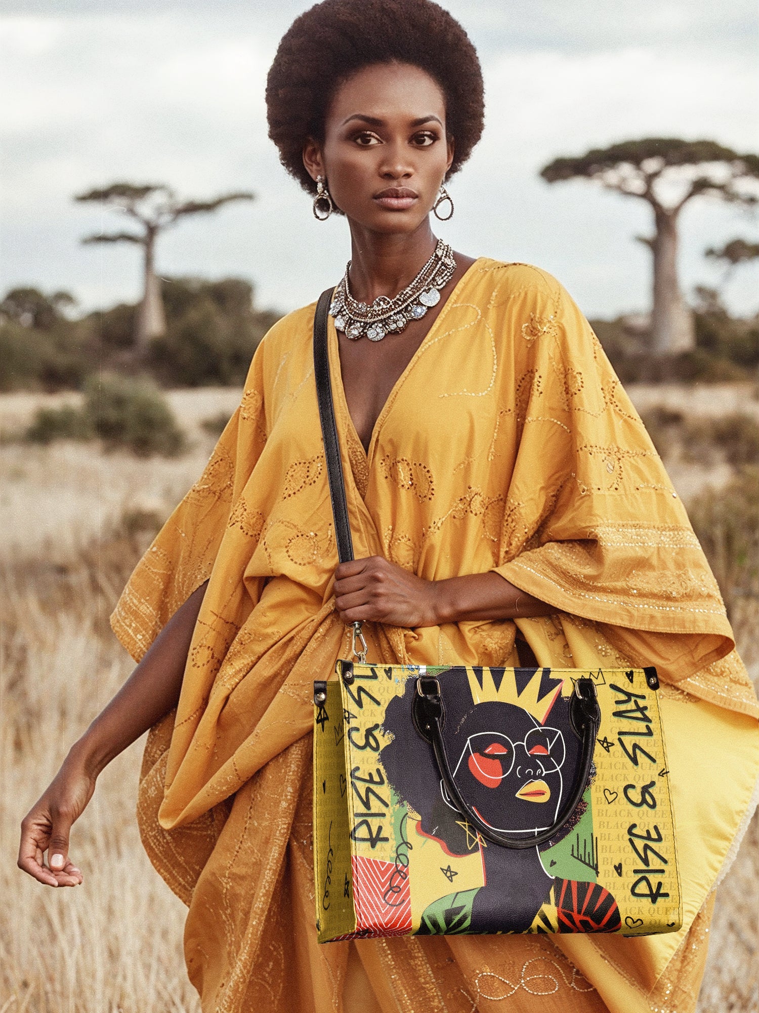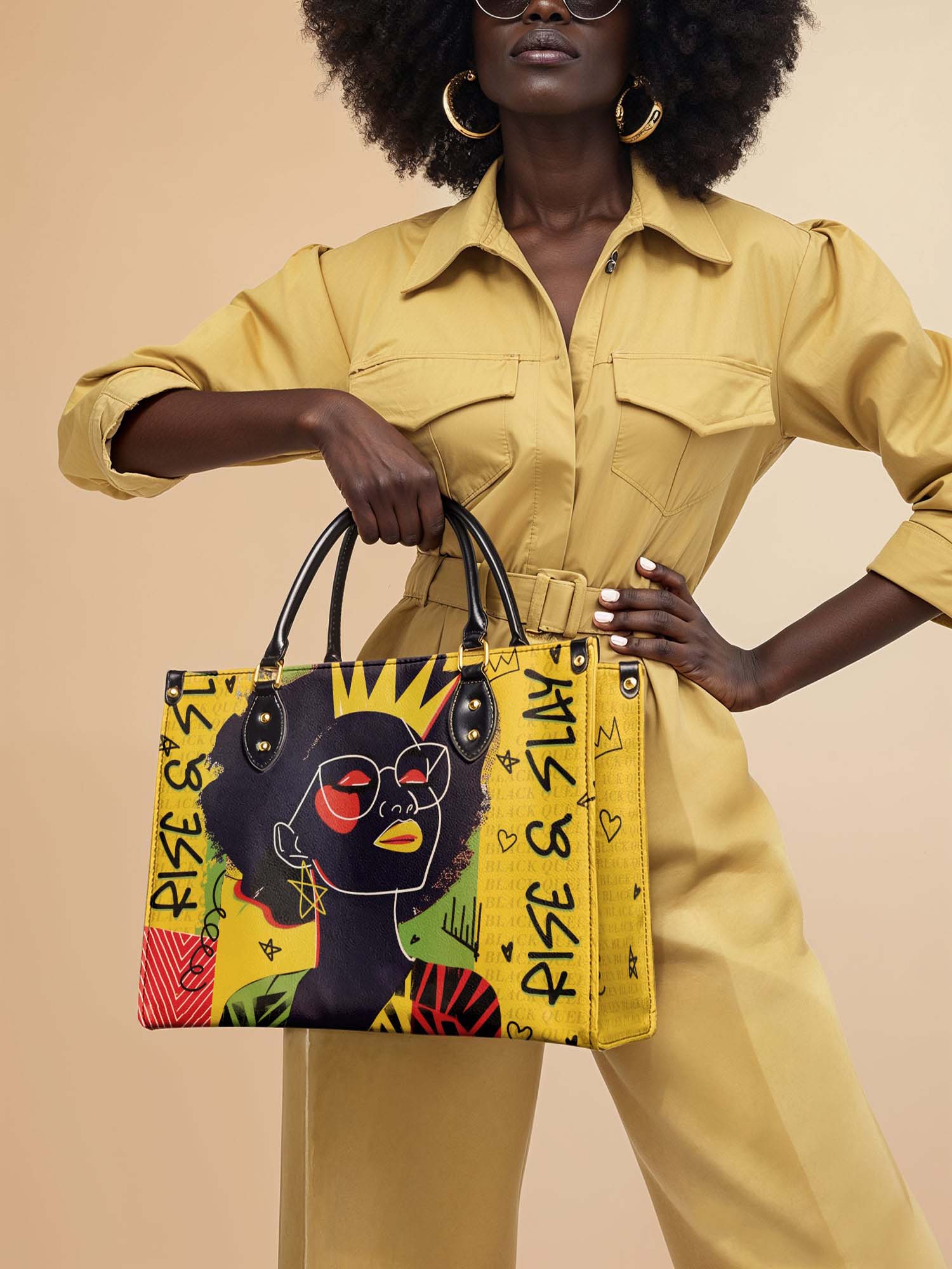 Featuring the empowering Rise & Slay artwork, this bag is a tribute to the courage and beauty of Black queens. Spacious, stylish, and unapologetically bold—carry Aina as a daily reminder to rise, slay, and shine with confidence!