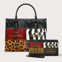 The "Kadia" Handbag, meaning "strong leader", celebrates the power of Black women. Featuring "I am strong, worthy, loved, enough", it reflects confidence and resilience. Inspired by Africa’s iconic animals—snake, zebra, leopard, and crocodile—this bag is a bold statement of strength, self-worth, and beauty. Carry it with pride!