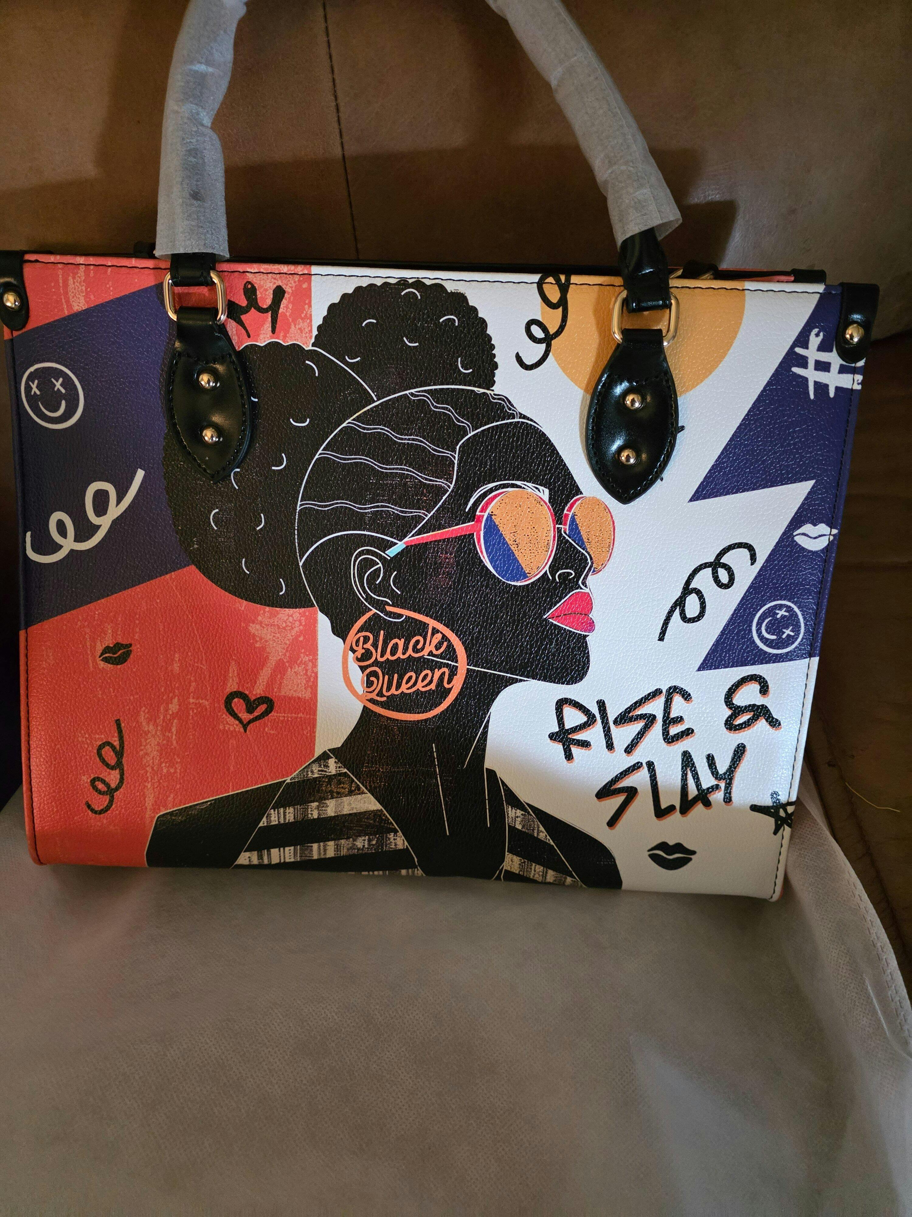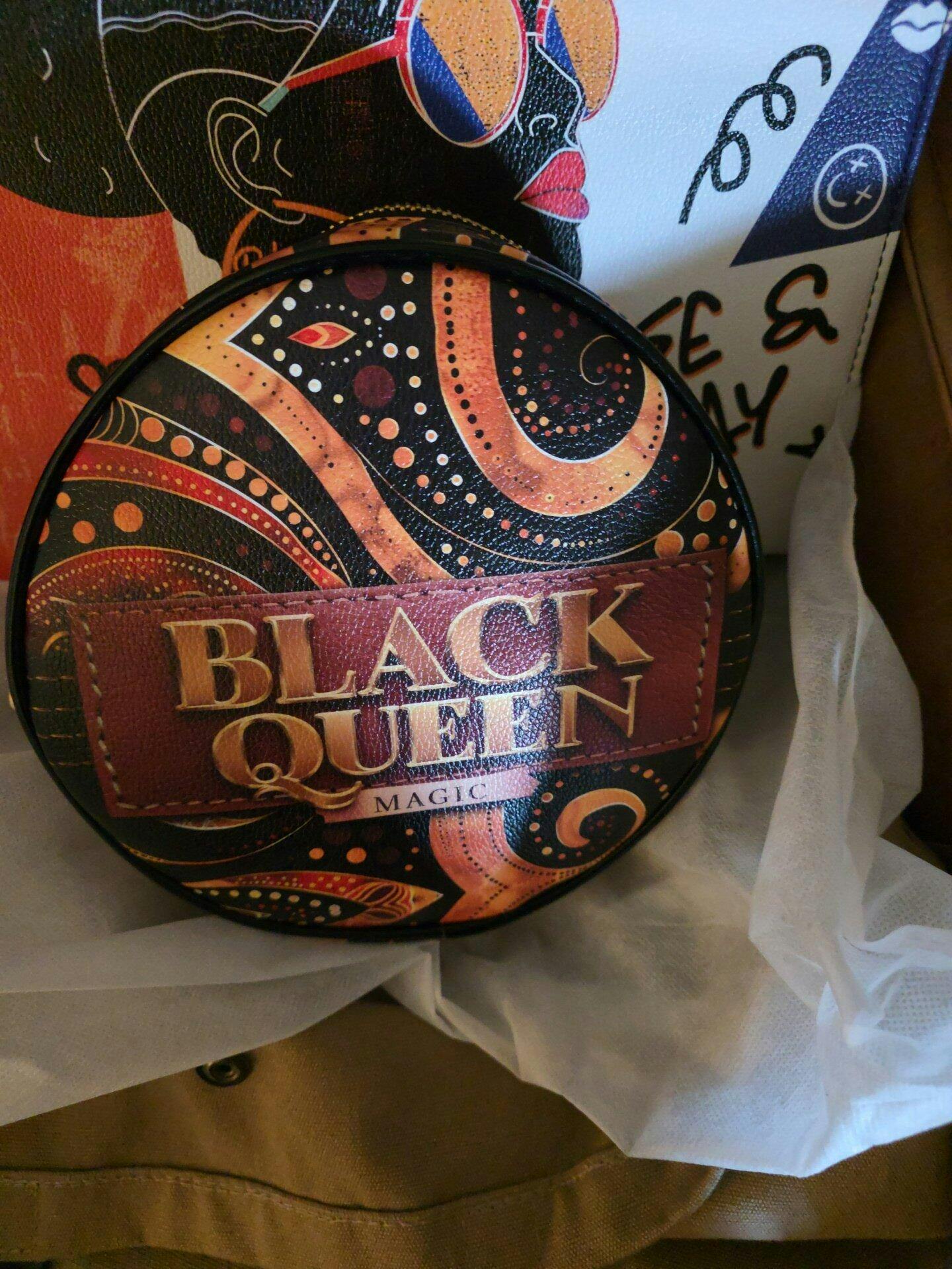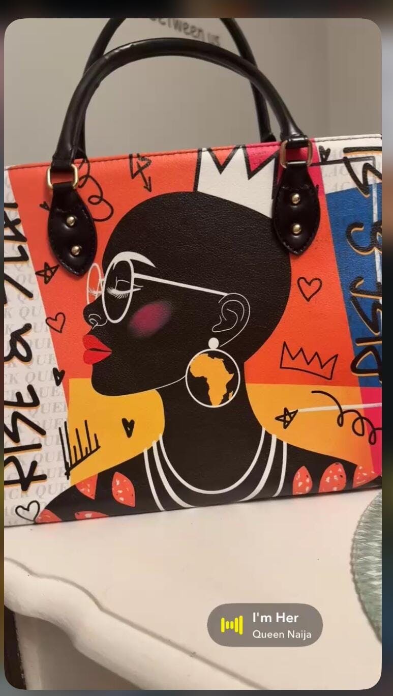 I’ve never had a bag that describes me to the point were this bag has! I’ve been dealing with Alopecia for years and always loved supporting black owned businesses but all the ladies would have Afros braids etc, when he brought me the bags that were supposed to be a Christmas gift he said he just couldn’t wait! I was so excited when I seen a lady on the purse who represented me and what I looked liked, down to the glasses and earrings! He also purchased good black wife ! It was a perfect just because gift!