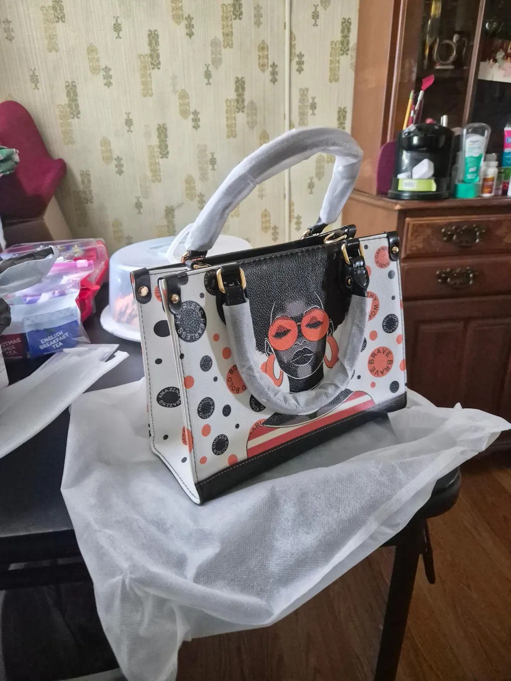I finally received my purchase order. I decided to take a chance and order from this Black owner Afroyla. One of My favorite purse only because of the affirmations I AM which I always says every morning. So when I saw this purse I knew that I was going to get it. But I went beyond this one & brought 3 more within the same order. I used the I AM purse the same day I received my order. & YES..I Received a compliment from my sister in law who I had take to the doctors office. Now she will checkout Afroyla. These are great purses to own. Great & positive affirmations, bold colors,different & attention getting style & conversation starters. The material is not soft leather but to Me the material feels like carrying a MC purse which I own several original ones. But I like versatility.Theres plenty of room for my Surface Pro tablet & extra space for other items. The yellow interior is colorful & pretty, hopefully it will be okay to clean later. So far great guality. I took a chance & ordered from this company and I Love ❤️ all of my purchases & I look forward to ordering more for myself & friends too. SUPPORT THIS COMPANY!!!