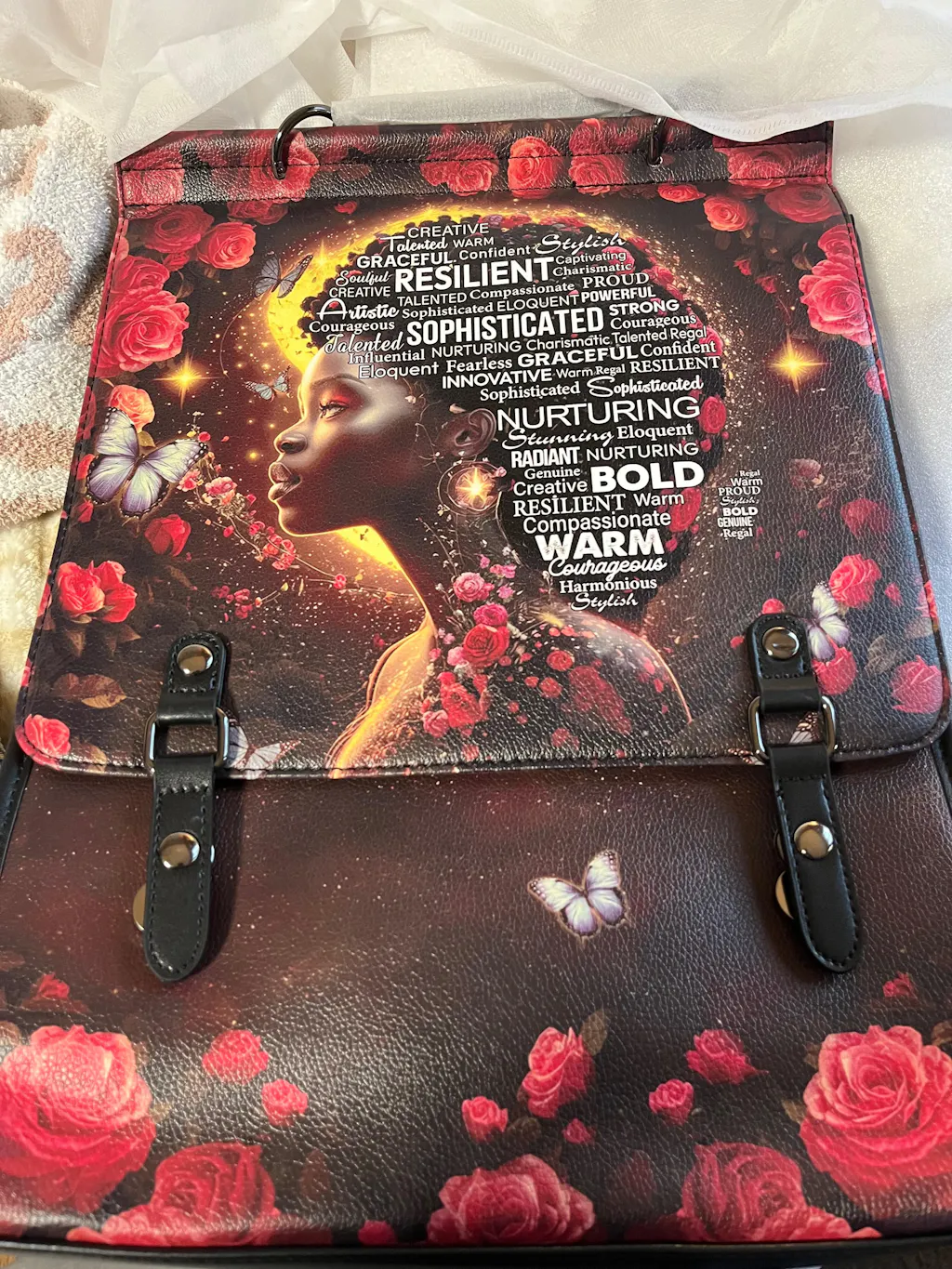 I bought the small satchel 1st because I LOVE the message. I later purchased the small handbag so my daughter & I could have a match statement piece. Not to mention it gave her that extra boost of confidence she needs as an African American girl.❤️