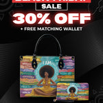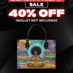 This handbag is covered in affirmations, each reflecting the undeniable power of Black women: brave, beautiful, ambitious, magical, educated, and proud. It’s more than a bag—it’s a reminder to walk with confidence and embrace every part of who you are. Wear your pride, carry your essence.