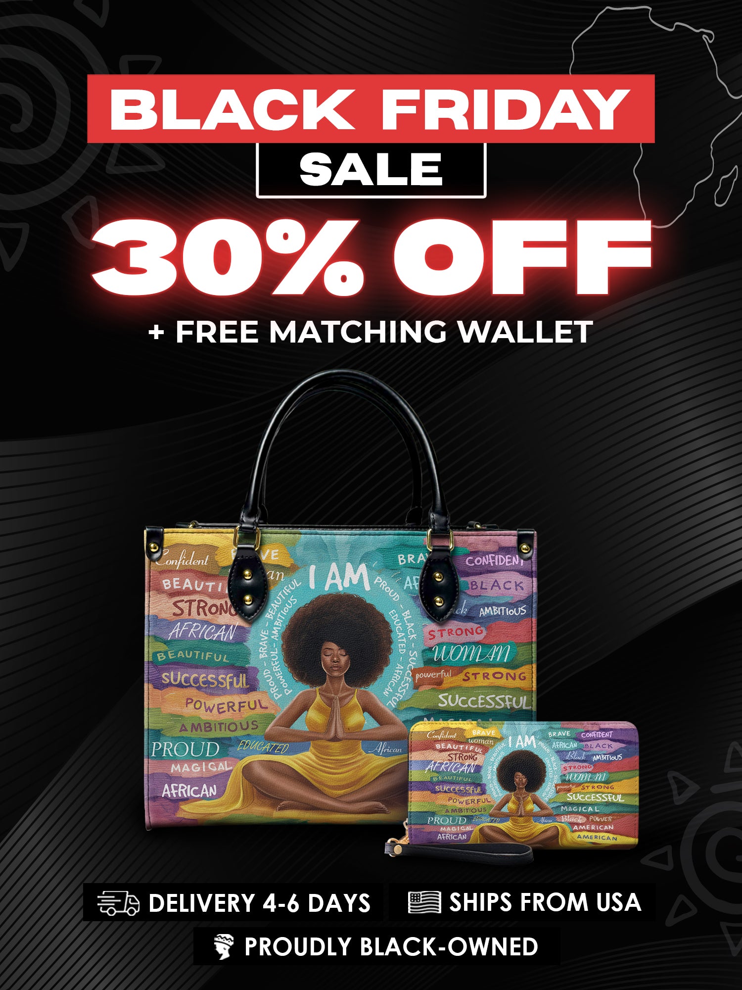 The AfroEssence Handbag is a powerful statement piece that embodies the essence of Black women—strong, beautiful, confident, and unstoppable. The name "AfroEssence" represents the soul and spirit of African heritage, celebrating the unique beauty, strength, and resilience that define Black women.
