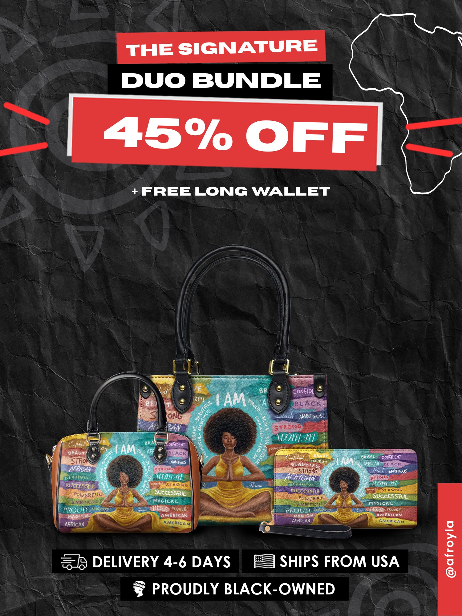 Show us how you wear your power. Tag @afroyla.handbags with your favorite looks for a chance to get featured!
