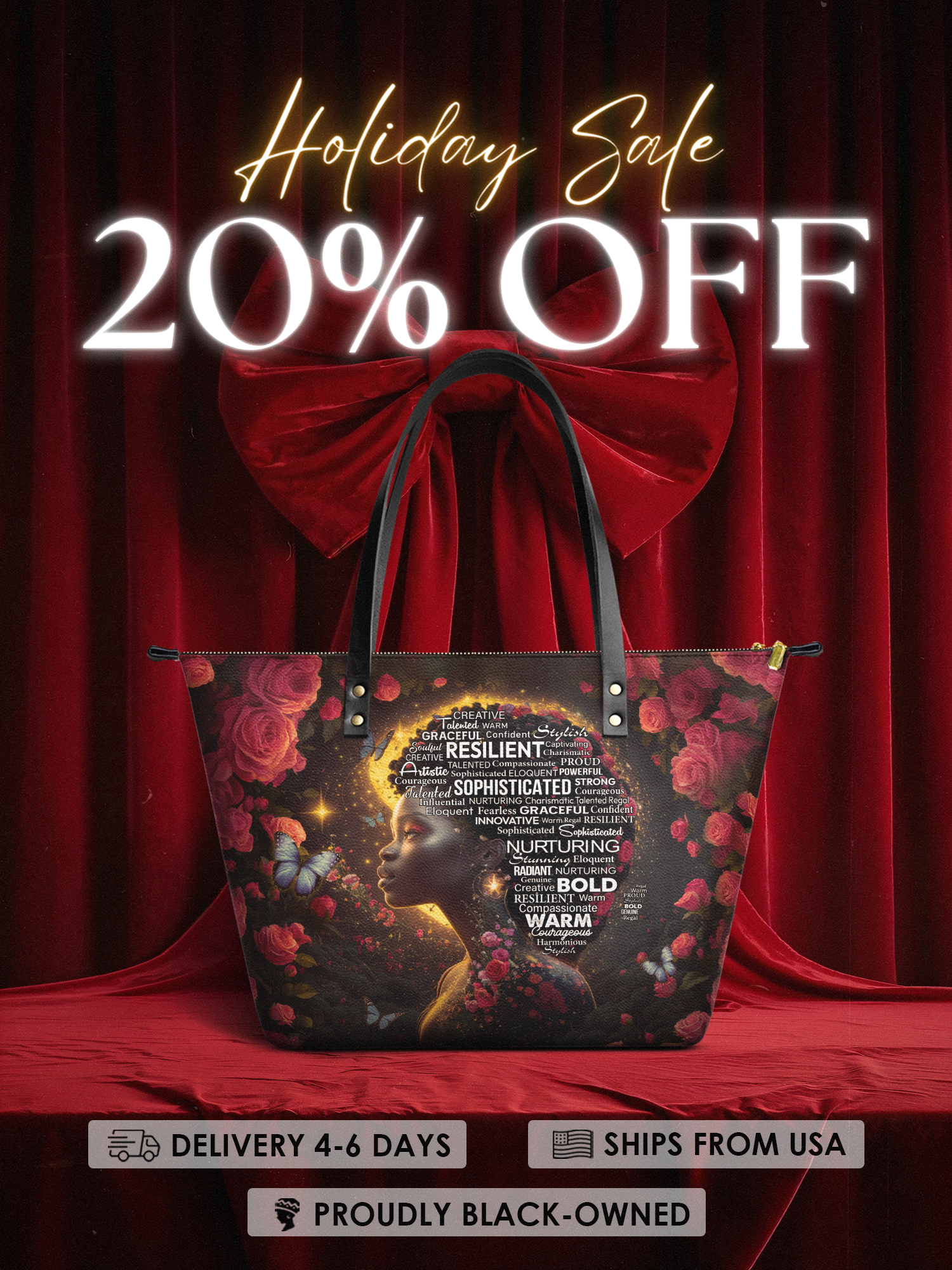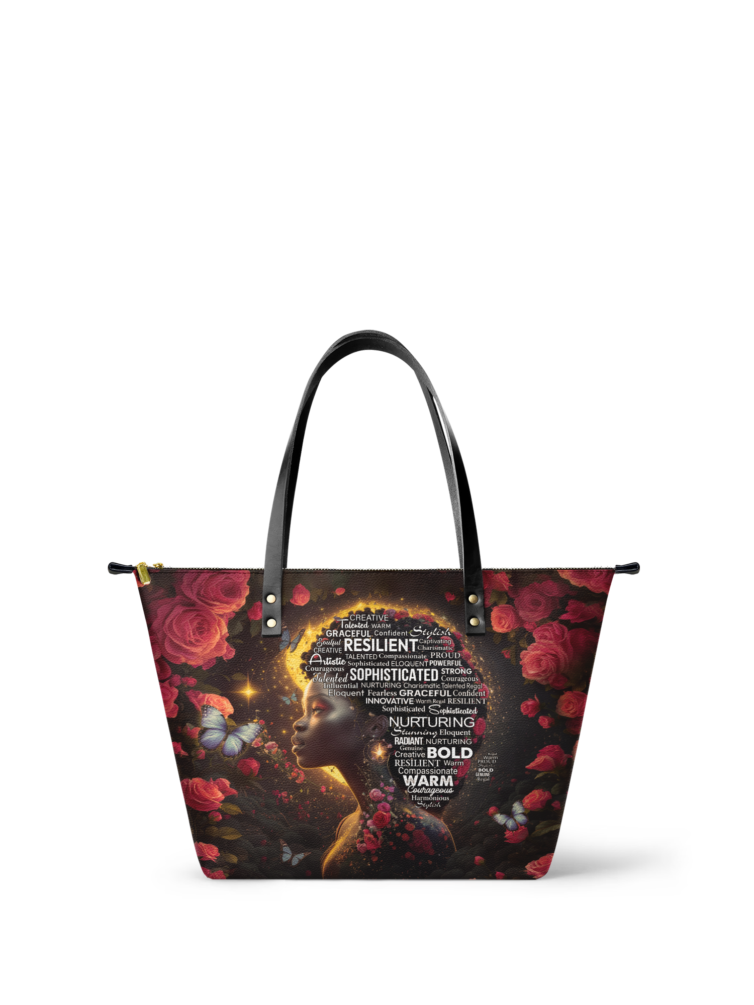 Wrapped in warm florals, radiant light, and gentle butterflies, it honors the parts of you the world often overlooks... and the ones you’ve always known were there. Because being a Black woman means being everything—and this bag carries every part of that beauty with pride.