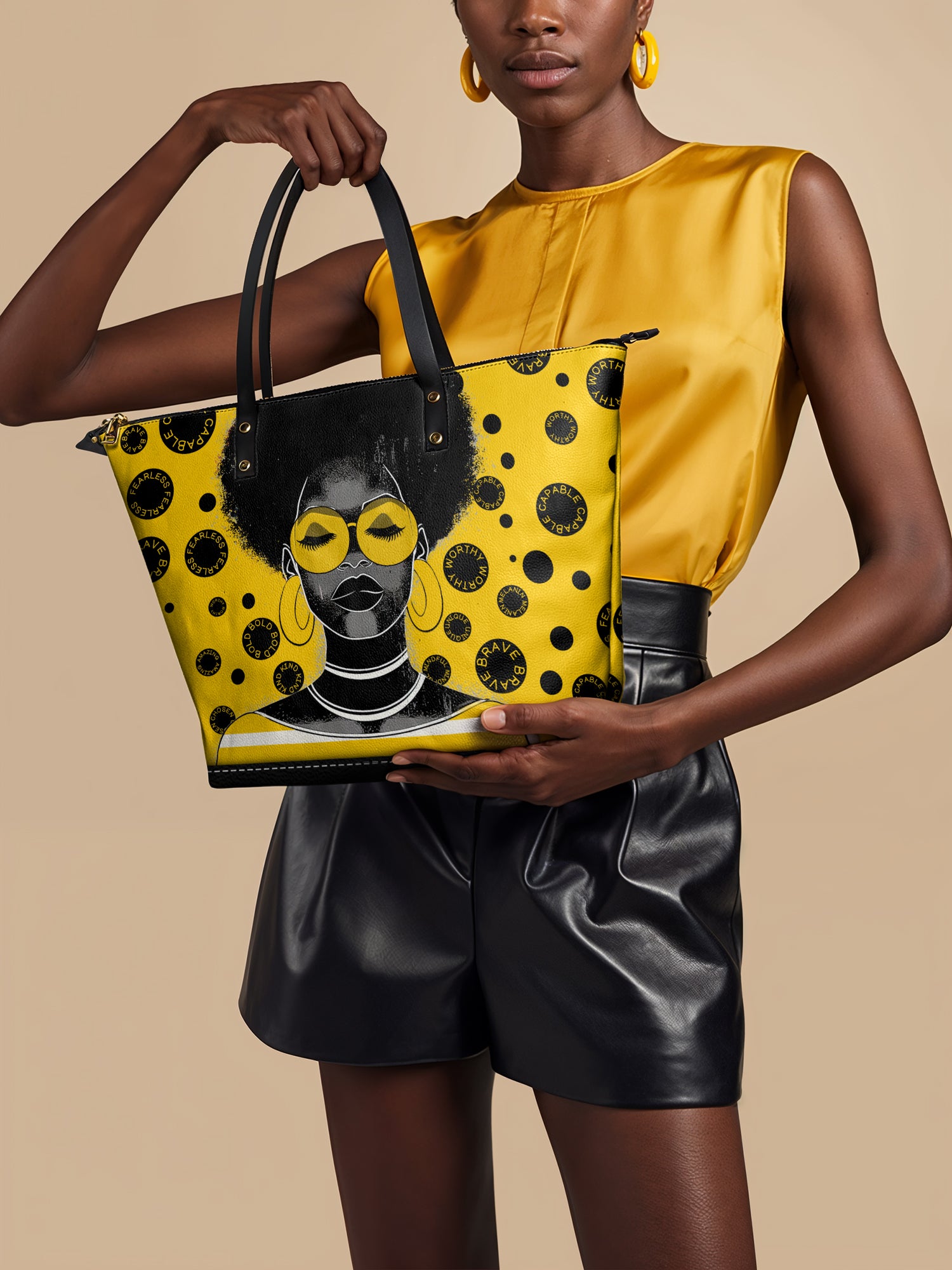 Afroyla "Fahari" Marigold Pop Leather Tote Bag Deal