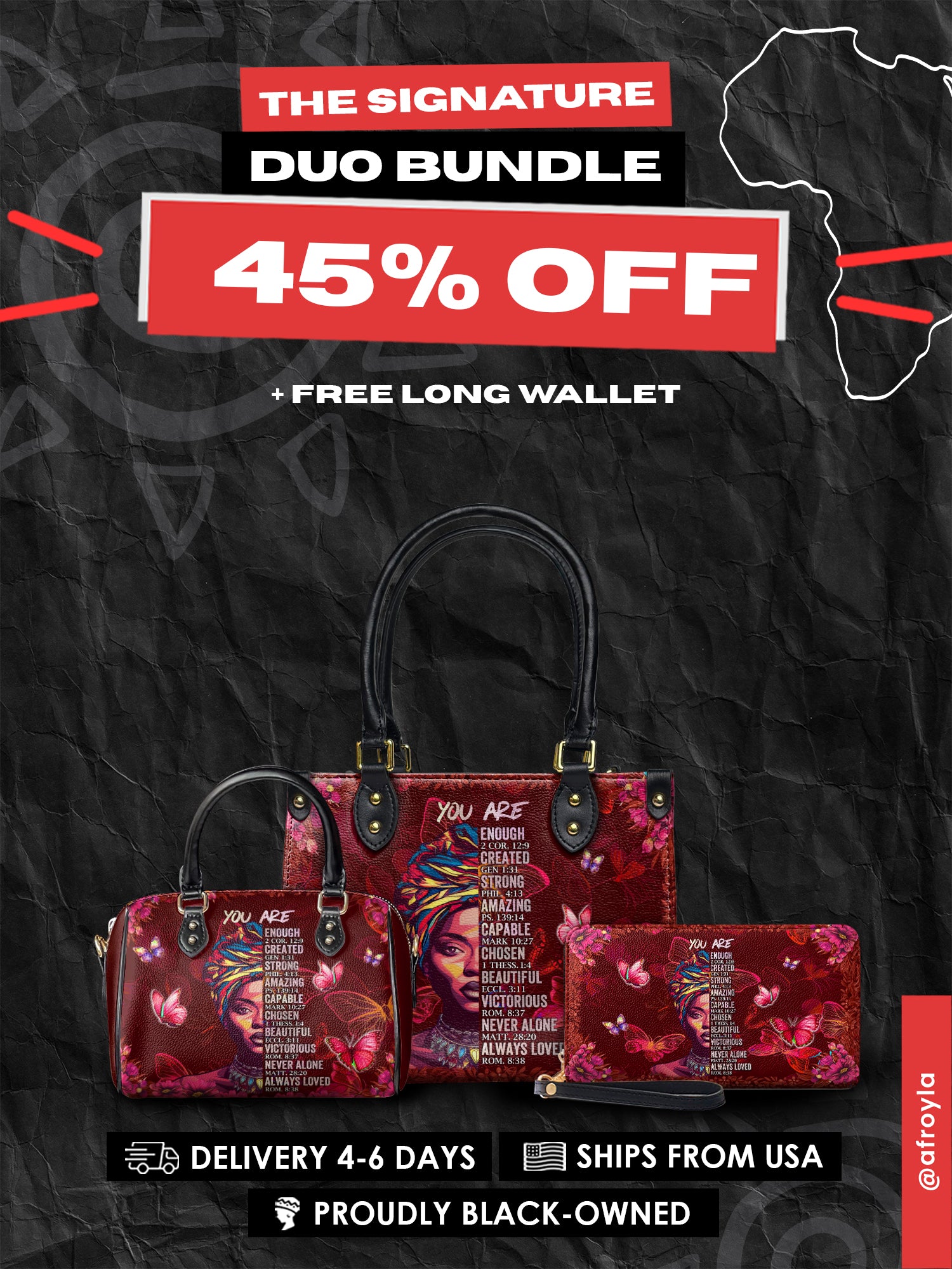 Show us how you wear your power. Tag @afroyla.handbags with your favorite looks for a chance to get featured!