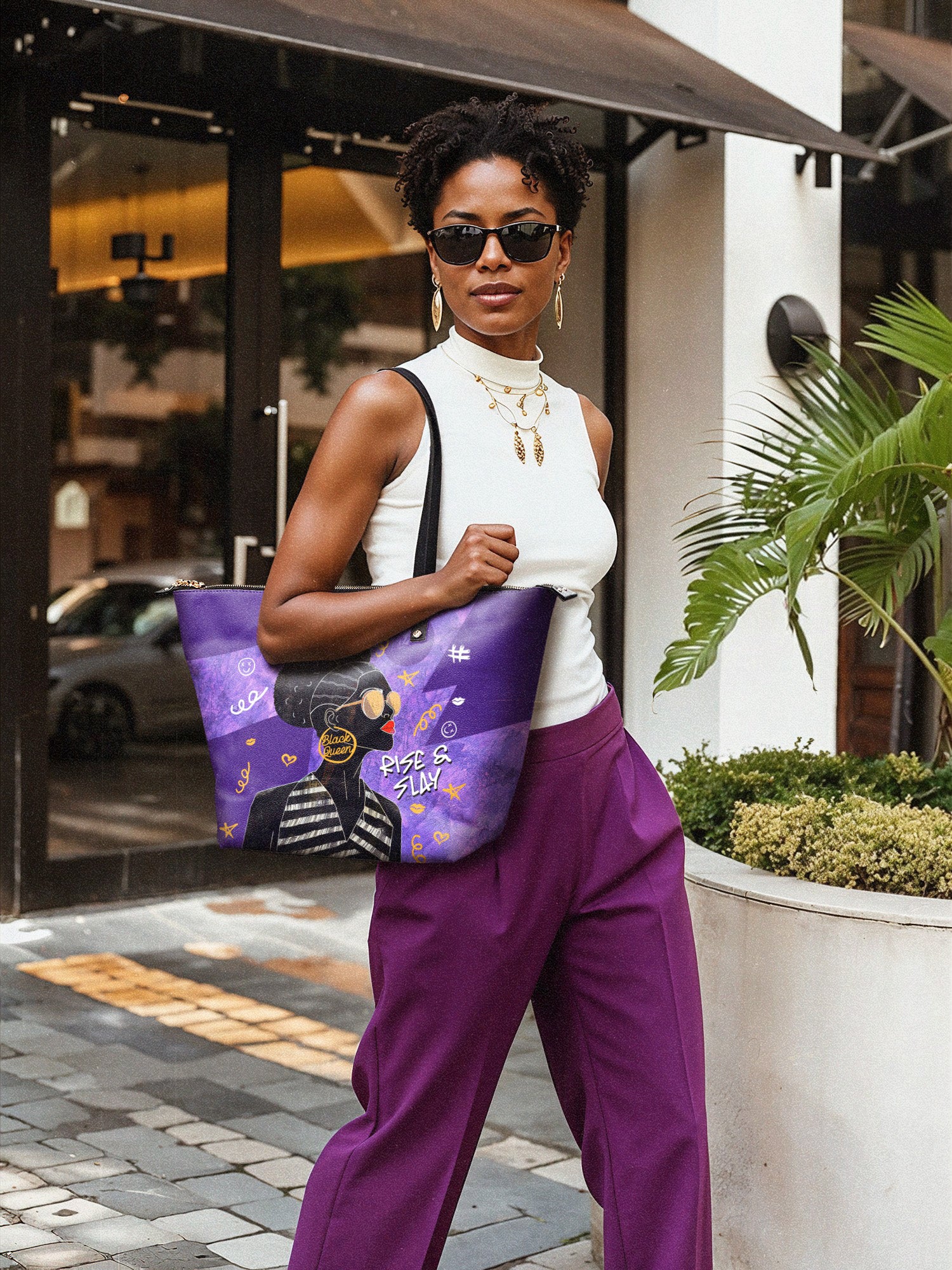 Afroyla "Sanaa" Purple Crayon Leather Tote Bag Deal