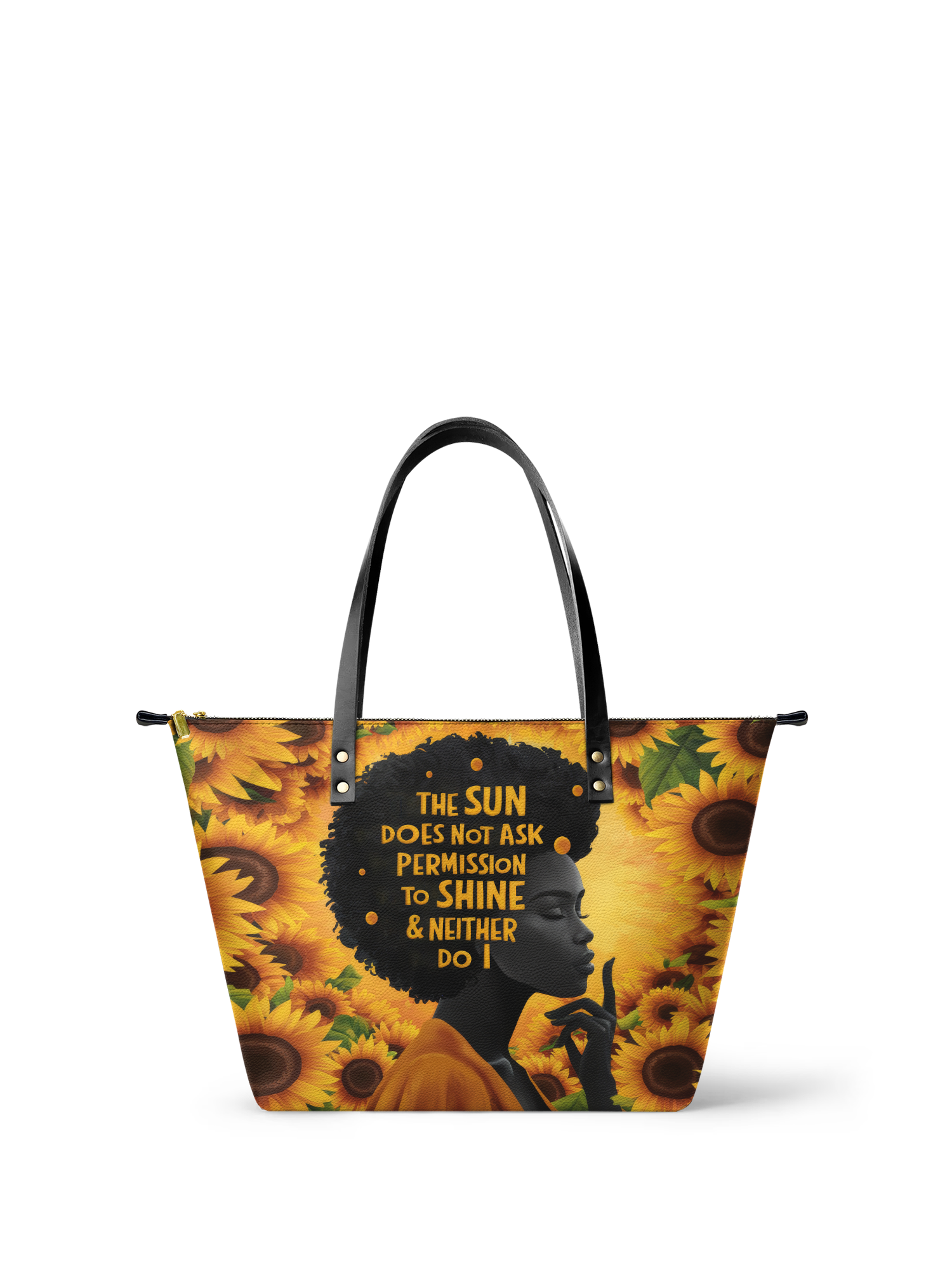 The Sunaya tote is a quiet but powerful reminder: you don’t need permission to shine. Surrounded by bold, blooming sunflowers, she stands in her truth—soft, steady, and glowing from within. This bag is all about choosing yourself, choosing your light, and choosing to stand tall no matter who’s watching. It’s not about asking. It’s about being. If you’re done dimming your brilliance to make others comfortable, Sunaya is your new everyday anthem.