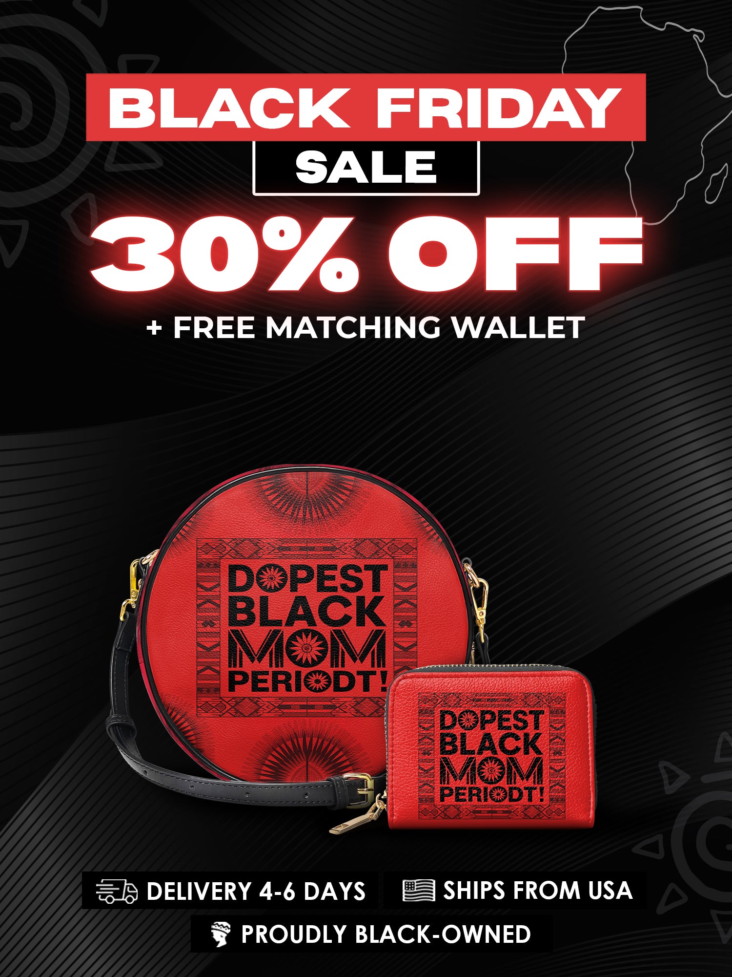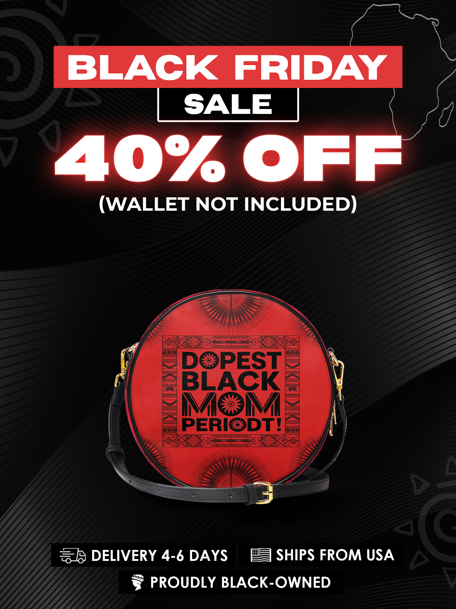 The Tajimom crossbody doesn’t play—it says it straight. Dopest. Black. Mom. Periodt. With bold black tribal lines stamped on fire-red leather, this bag brings the heat and the pride. It's loud, it's proud, and it's for the mama who walks like she knows exactly who she is. Whether you’re stepping out solo or with the whole crew behind you, this bag makes one thing clear: you’re that mom, and you’re doing it with style.