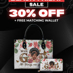 The Zanira Leather Handbag is your daily reminder that faith looks this good. With floral strength, fierce grace, and a crown of confidence, she whispers a simple truth everywhere you go: With God, all things are possible. Carry her like the testimony you are—bold, beautiful, and completely covered.
