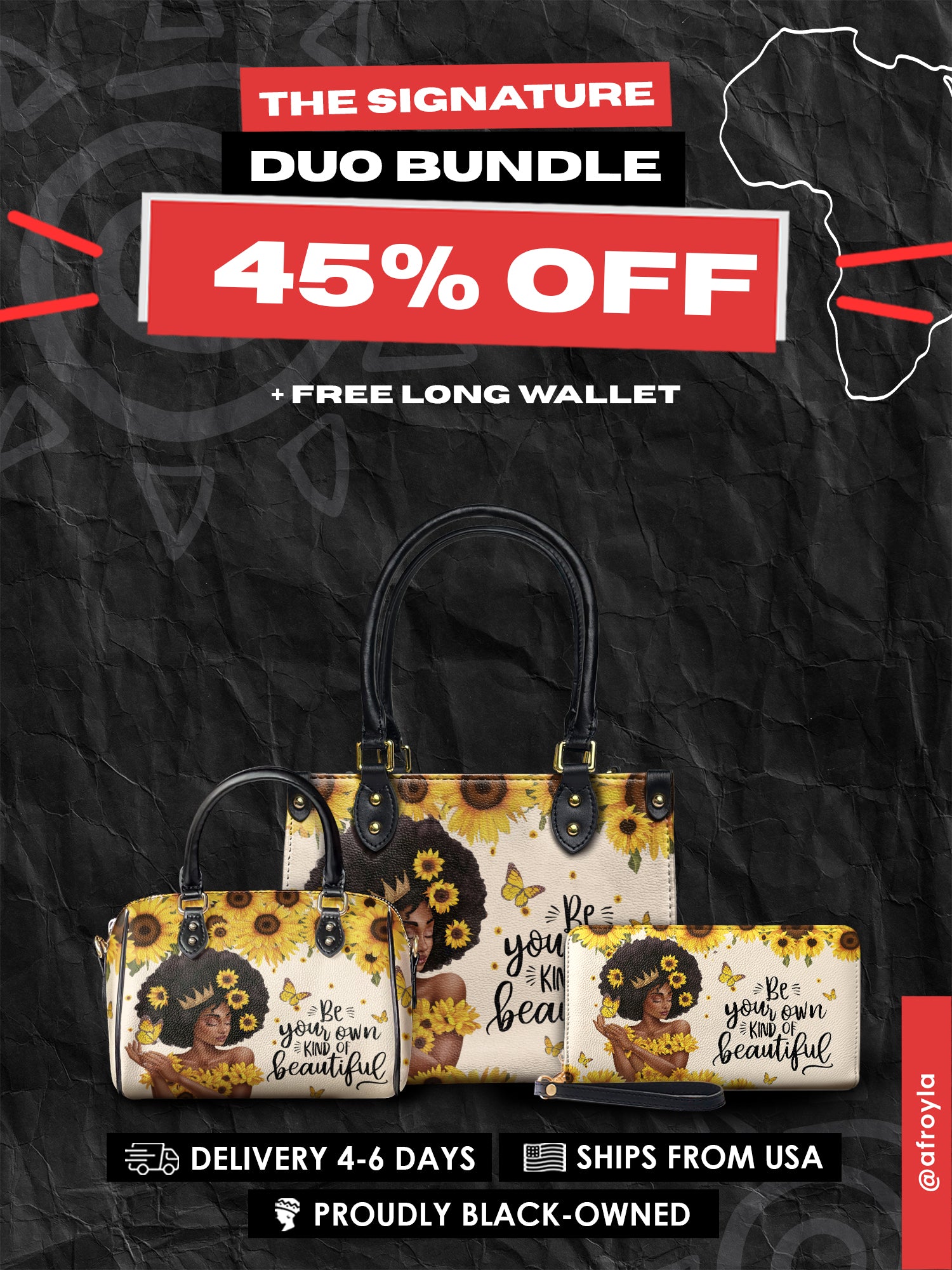 Show us how you wear your power. Tag @afroyla.handbags with your favorite looks for a chance to get featured!